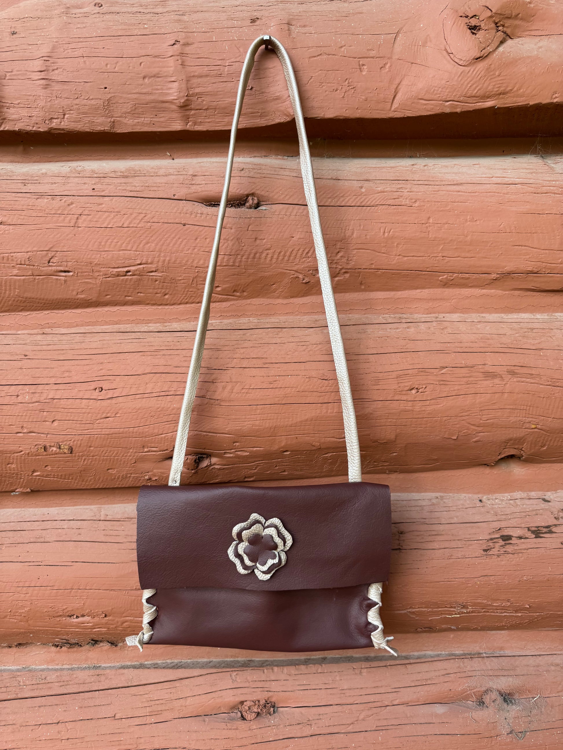 Maroon Hand Laced Purse with Flower Detail